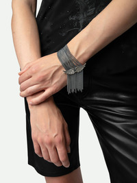Silver-tone brass cuff bracelet with multiple chains embellished with wings. Description & details - Women’s Antic Silver recycled brass cuff bracelet - Multiple chains - Wings pendant - Adjustable clasp Composition 100% BRASS Care - Clean you jewellery with a soft, dry cloth - Avoid contact with water and chemicals (fragrance, cosmetics, chlorine, hydroalcoholic gel) - Protect your jewellery from humidity and any source of heat - Avoid sleeping with your jewellery on - Store your jewellery in its protective pouch Product code: OWJW00599_ANTIC SILVER