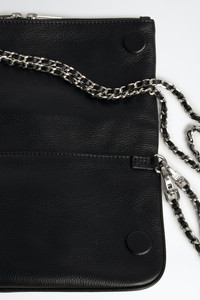 Women's Rock swing clutch in black leather Description & details Swing Your Wings: the most iconic clutch gives you a range of choices. It's up to you to customize the wings to suit your desires and your looks. As a bag or as a clutch, worn on the shoulder or carried by hand, take this iconic Zadig&Voltaire piece with you everywhere. Zadig&Voltaire women’s black leather clutch bag -Removable wings -Zipped- 2 removable chains-Worn on the shoulder or across the body Width x Height x Depth: 27 x 13 x 2 cm. Chains : 70cm and 117cm. Composition 100% CALF LEATHER Care - Protect your leather item from humidity and any source of heat (radiator, sun) - Avoid your item coming into contact with water - Regularly care for your leather item using a colourless nourishing cream for leather, suitable for leather goods - Ensure you wear your item with similar colours - Avoid overfilling your bag to ensure its durability - In case of stains, contact a leather professional Product code: WKAP2001F_NOIR SILVER