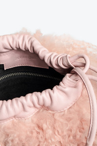 Women’s small bucket bag in pink shearling leather with drawstring and shoulder strap. Description & details - Zadig&Voltaire Flash pink Cosy leather bucket bag - Shearling - Shoulder strap and drawstring closure - Zipped inside pocket - Carry over the shoulder or across the body Height x Width x Length: 6.5 x 5.5 x 1.6 in. Composition 100% LAMBSKIN Care Do not expose your item to a source of heat or to sunlight for a prolonged period. In the event of accidental exposure to water, leave your item to dry at room temperature, away from direct light. Avoid routinely overloading your handbag or clutch. To prolong its life, store your item in a dust bag and pad it with tissue paper to maintain its shape. To maintain the shine of your smooth or grained leather item, use a leather cream or polish. Product code: LWBA02403_COSY