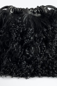 Women’s small bucket bag in black shearling with drawstring and shoulder strap. Description & details - Zadig&Voltaire black leather bucket bag - Shearling - Shoulder strap and drawstring closure - Zipped inside pocket - Carry over the shoulder or across the body Height x Width x Length: 6.5 x 5.5 x 1.5 in. Composition 100% LAMBSKIN Care Do not expose your item to a source of heat or to sunlight for a prolonged period. In the event of accidental exposure to water, leave your item to dry at room temperature, away from direct light. Avoid routinely overloading your handbag or clutch. To prolong its life, store your item in a dust bag and pad it with tissue paper to maintain its shape. To maintain the shine of your smooth or grained leather item, use a leather cream or polish. Product code: LWBA02403_NOIR