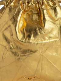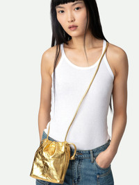 Women’s small bucket bag in metallic gold leather with drawstring and shoulder strap. Description & details - Metallic gold leather bucket bag - Shoulder strap and drawstring closure - Zipped inside pocket - Carry over the shoulder or across the body Composition 100% COW LEATHER Product code: LWBA02453_GOLD