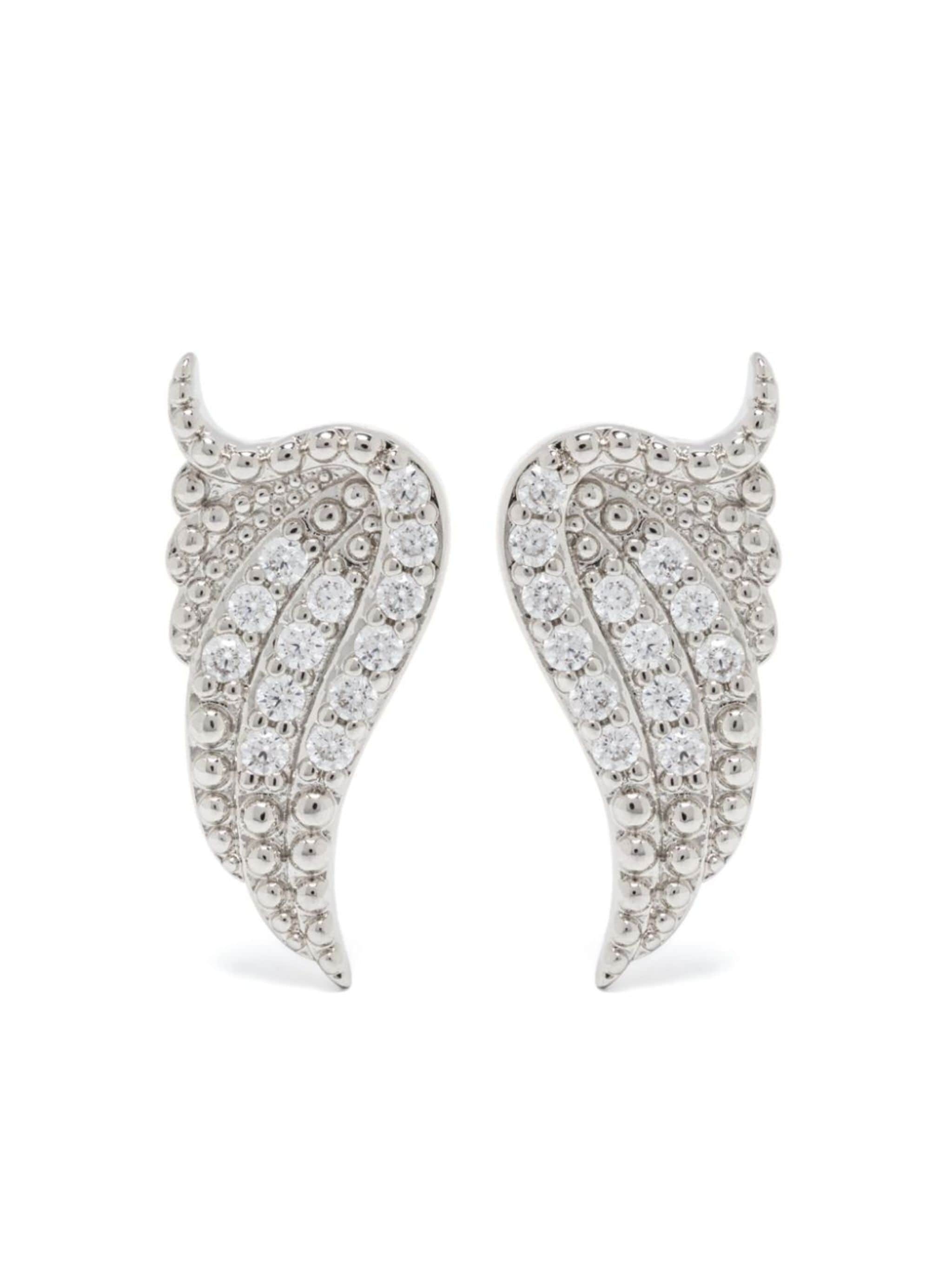 silver-tone metal polished finish signature wings motif round cut pave setting post-back fastening for pierced ears These earrings come as a pair. This piece comes complete with a protective dust bag. Size & Fit Model Measurements: Height: 1.75 m Bust/Chest: 78.0 cm Hips: 88.0 cm Waist: 59.0 cm Model wears size OS Fabric and Care Designer Style ID: OWJW00630 Designer Colour: SHINY SILVER Composition: Metal 100%Made in Vietnam