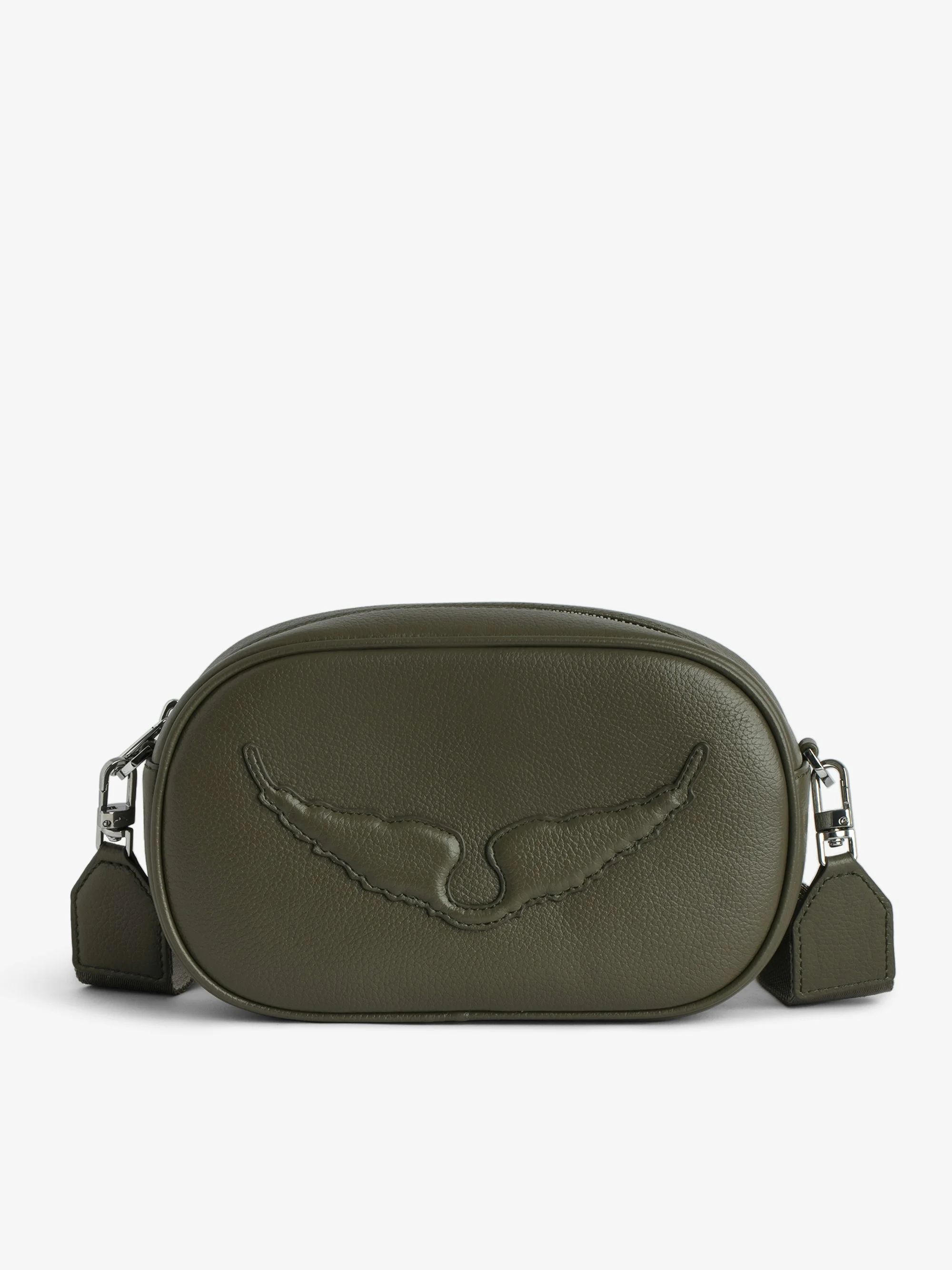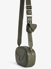 Khaki grained leather camera bag with shoulder strap, accessorised with an earphone case. Description & details - Rock With You camera bag in grained khaki leather Record for women - Adjustable and removable shoulder strap signed Zadig&Voltaire and earphone case - Zip fastening - Rear patch pocket - Tonal embossed wings - Can be worn on the shoulder or crossbody - Strap made from 100% recycled polyester 21.5 x 12 x 6.5 cm Composition 100% Cow leather Care - Protect your leather item from humidity and any source of heat (radiator, sun) - Avoid your item coming into contact with water - Regularly care for your leather item using a colourless nourishing cream for leather, suitable for leather goods - Ensure you wear your item with similar colours - Avoid overfilling your bag to ensure its durability - In case of stains, contact a leather professional Product code: LWBA03657_RECORD