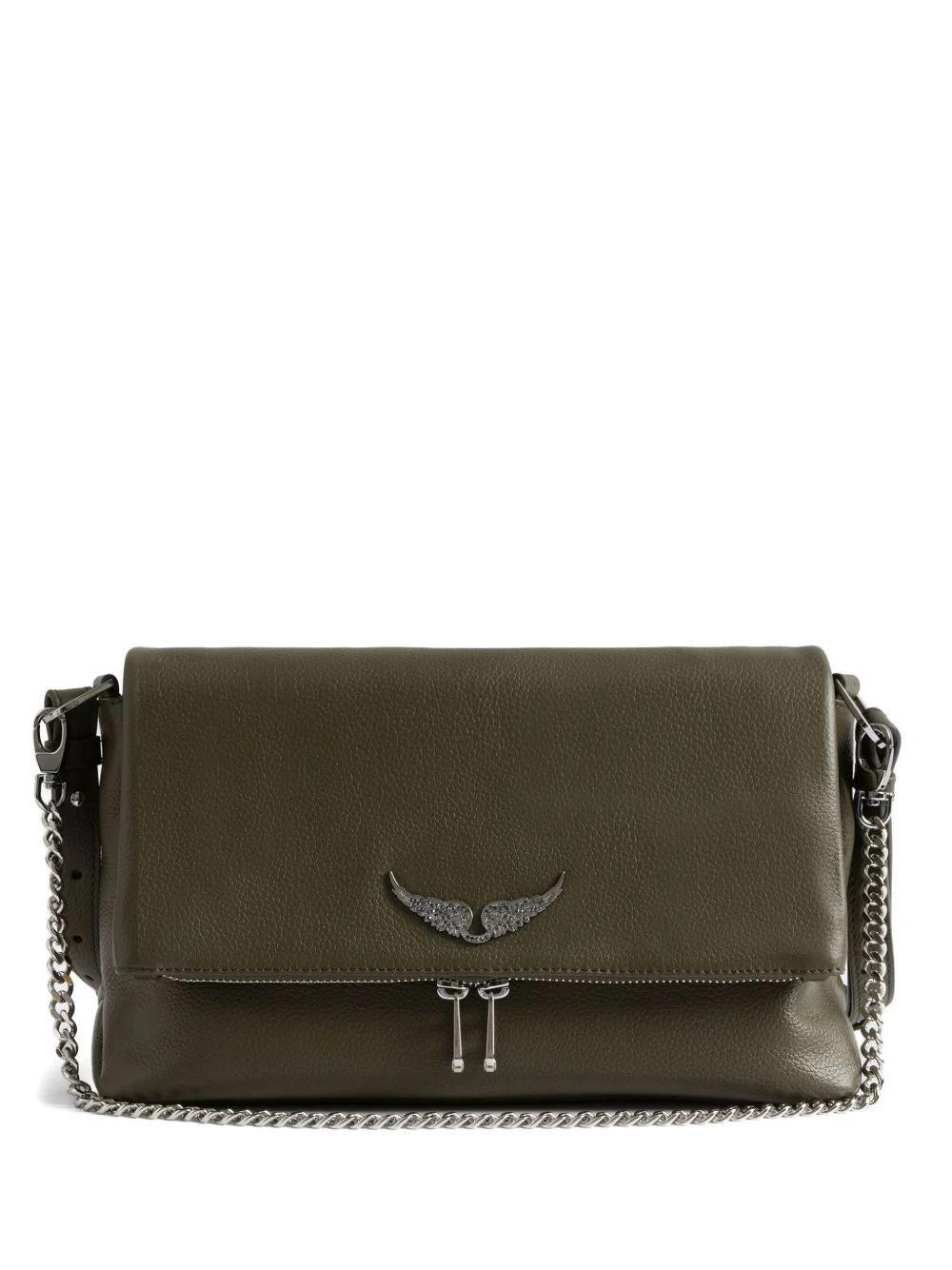 Rocky wings chain-strap shoulder bag Highlights - Olive green - Leather construction - Crystal-embellished wings - Chain strap - Flap closure - Double zip Imported Composition Outer: Calf Leather 100%