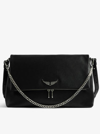 Grained leather shoulder bag with chain and signature wings. Description & details - Large grained leather bag - Adjustable and removable leather shoulder strap with eyelets to attach accessories - Sliding metal chain with signature eyelets - Zip closure with signature wings puller - Flat back pocket with magnetic closure - Interior patch pocket - Rhinestone-embellished signature wings - Shoulder or cross-body carry 22.5 x 12 cm Composition 100% Cow leather Care - Protect your leather item from humidity and any source of heat (radiator, sun) - Avoid your item coming into contact with water - Regularly care for your leather item using a colourless nourishing cream for leather, suitable for leather goods - Ensure you wear your item with similar colours - Avoid overfilling your bag to ensure its durability - In case of stains, contact a leather professional Product code: LWBA04126_BLACK