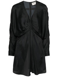 Rooth satin mini dress Highlights - Black - Satin weave - Lightweight construction - V-neck - Long batwing sleeves - Ruched detailing to the chest - Fitted waistline - Flared skirt - Straight hem - Concealed rear hook and zip fastening Imported Composition Polyester 100% SIZE & FIT Model measurements Height 5 ft 10 in(1.77 m) Bust/Chest 33.07 in(84 cm) Hips 37 in(94 cm) Waist 24.8 in(63 cm) FittingInformation Designed for a loose fit at the chest with a close fit over the waist and hips Made from a midweight non-stretch fabric This piece fits true to size – take your usual size Washing instructions Hand Wash