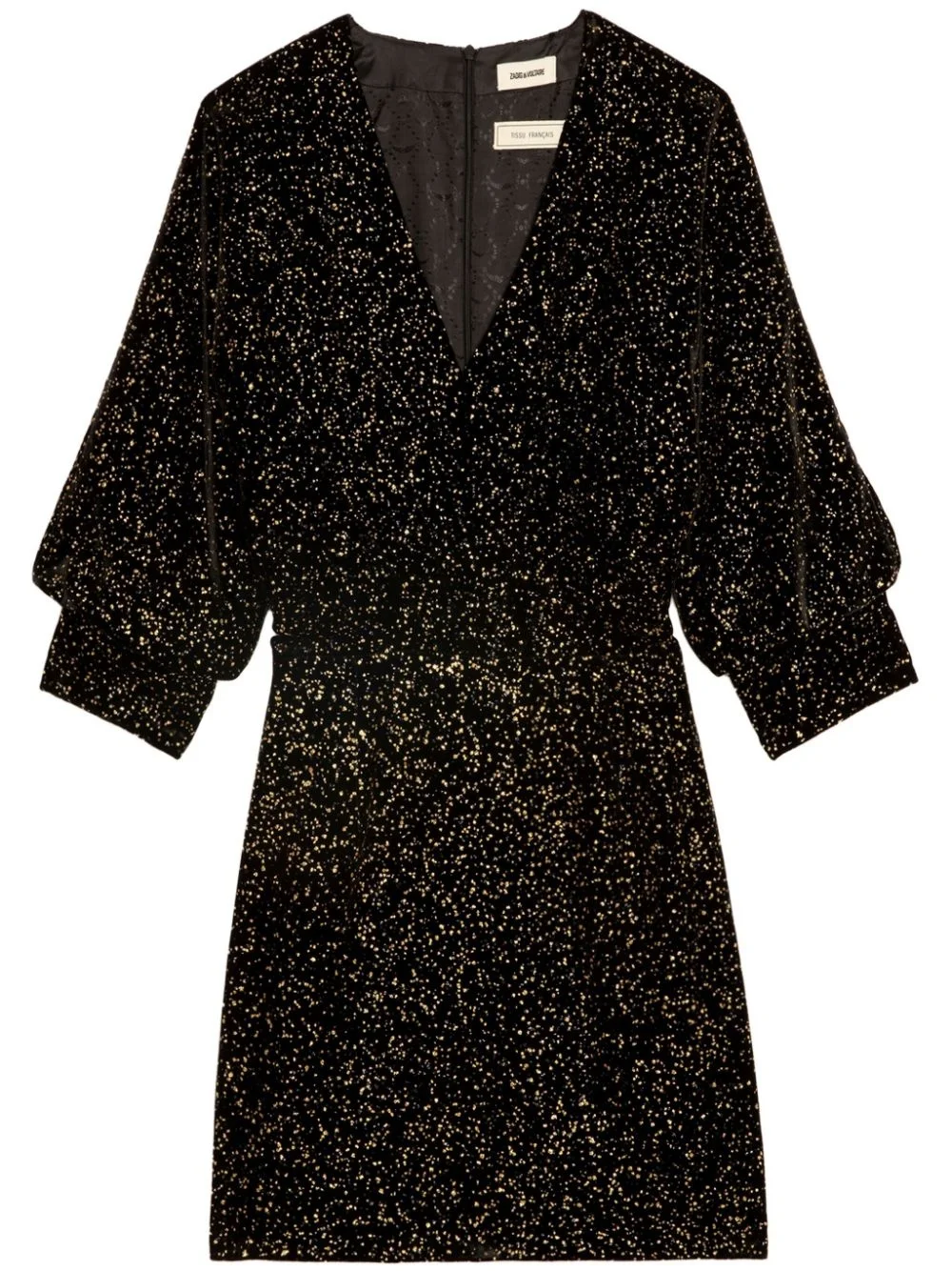 Rosli dress Highlights - Black - Sequin design - Rear zip fastening - V-neck - Three-quarter length puff sleeves - Thigh-length - Straight hem Imported Composition Viscose 82%, Silk 18% Washing instructions Hand Wash