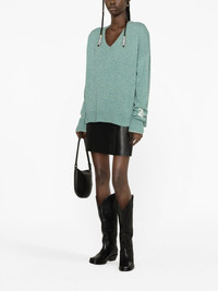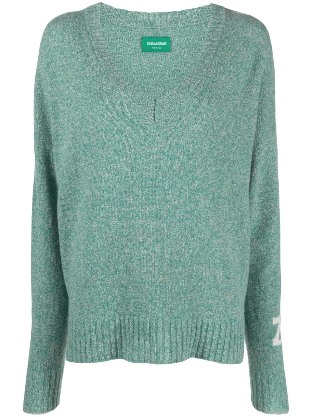 Rosy cashmere-blend jumper Designed for a relaxed fit with dropped shoulders, Zadig&Voltaire’s jumper leans into the brand's Parisian nonchalance. It’s spun from a blend of soft cashmere and wool and intarsia-knit with the ZV logo in contrasting white threads. Highlights - Moss green - Cashmere blend - V-neck - Long sleeves - Logo patch at the sleeve - Ribbed cuffs and hem Made in Italy Composition Cashmere 95%, Wool 5% SIZE & FIT Model measurements Height 5 ft 11 in(1.8 m) Bust/Chest 34.25 in(87 cm) Hips 35.82 in(91 cm) Waist 24.8 in(63 cm) FittingInformation Designed to be unstructured, offering a loose fit throughout Made with a midweight knit, this piece offers some stretch This piece fits true to size – take your usual size Washing instructions Hand Wash