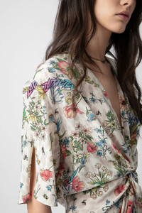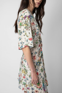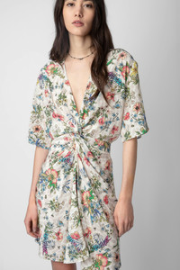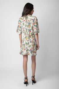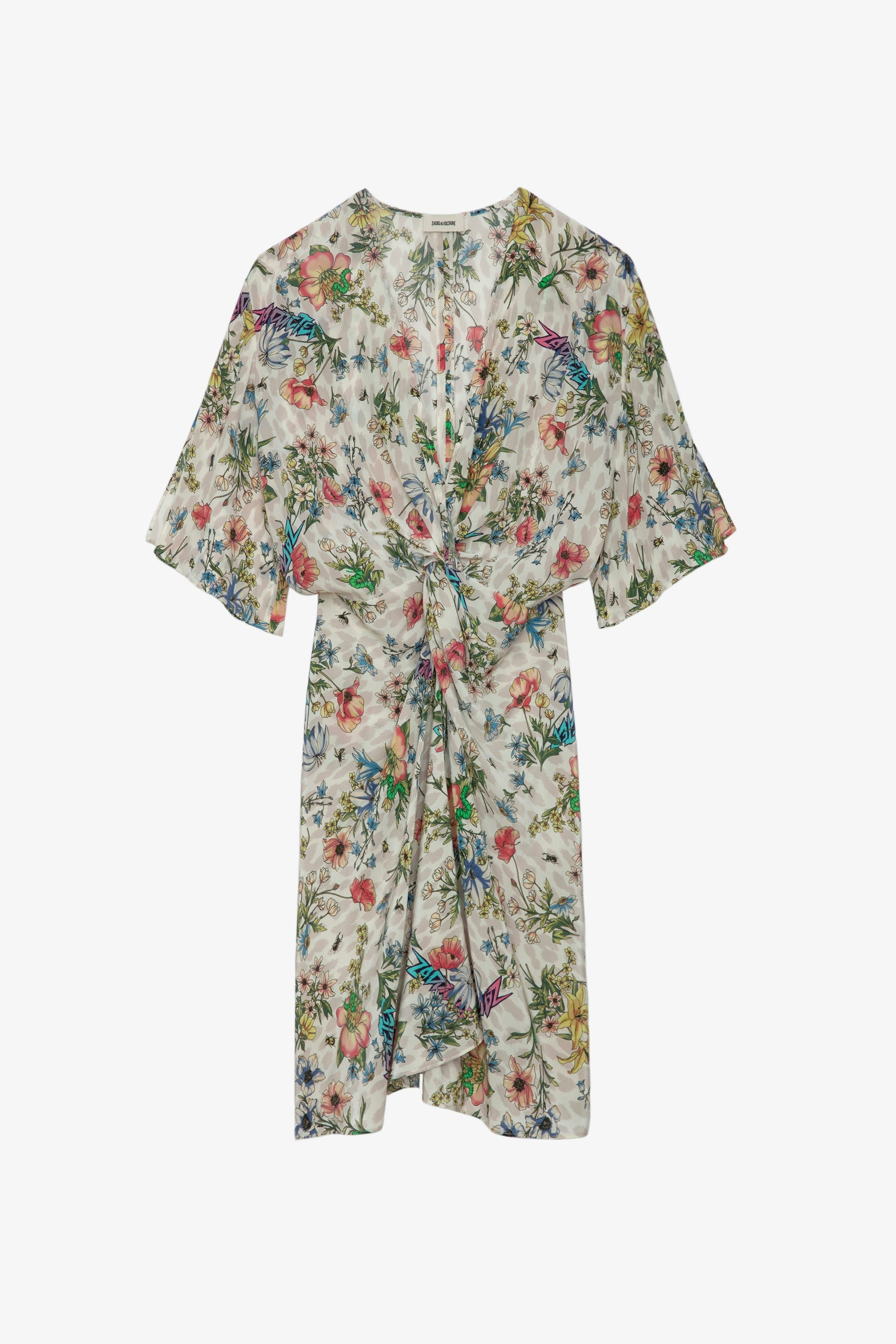 Ecru silk mini dress with Twisted Garden print, short sleeves and draped at the waist. Description & details - Women’s Vanille ecru fitted mini dress - Silk with Twisted Garden print - Deep neckline - Draped at the waist - Short sleeves This item is true to size. We recommend buying your usual size. Composition 100% SILK Care - Hand-wash or machine-wash inside out in a mesh laundry bag on a 20°C delicate cycle with a maximum spin speed of 400 rpm - Air dry flat - Iron inside out at a maximum of 110°C Product code: WWDR01318_VANILLE