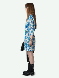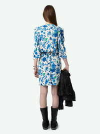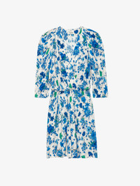 Ecru crepe mini dress with Garden Flowers floral print, gathers and crossover neckline. Description & details - Women’s Ecru crepe mini dress - Garden Flowers print and Zadig&Voltaire signature - Crossover neckline with hidden press stud and ruching on the shoulders - 3/4 -length sleeves - Smocking at the waist - Straight skirt Model is 175 cm / 5' 8" and is wearing a size S This item is true to size. We recommend buying your usual size. Composition 100% VISCOSE Care - Hand-wash or machine-wash inside out in a mesh laundry bag on a 20°C delicate cycle with a maximum spin speed of 400 rpm - Air dry flat - Iron inside out at a maximum of 110°C Product code: WWDR01395_ECRU