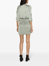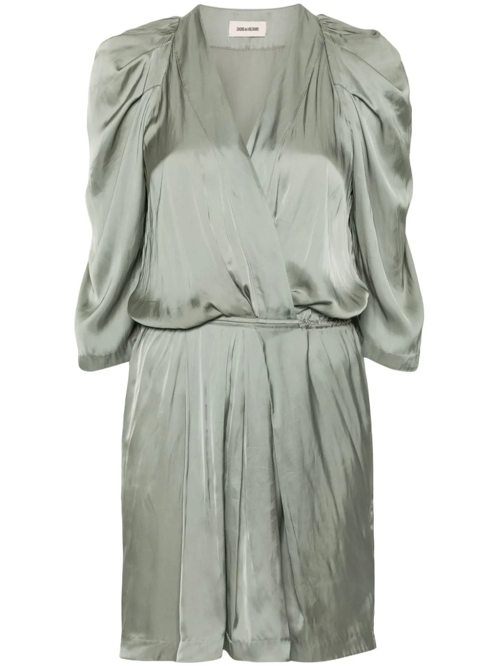 Ruz satin minidress Zadig&Voltaire's Ruz dress is characterised by its fluid satin construction that speaks to the brand's effortless aesthetic. Gathered shoulders add a slight sense of structure to the green garment. Highlights - Treillis green - Recycled polyester blend - Satin finish - Gathered detailing - Pleat detailing - V-neck - Half-length sleeves - Elasticated waistband - Straight hem - Unlined - Thigh-length Imported Composition Recycled Polyester 57%, Polyester 43% SIZE & FIT Model measurements Height 5 ft 10 in(1.78 m) Bust/Chest 31.49 in(80 cm) Hips 35.03 in(89 cm) Waist 23.62 in(60 cm) FittingInformation Designed to be unstructured, offering a loose fit throughout The elasticated waist allows for a comfortable fit Made from a lightweight non-stretch fabric This piece fits true to size – take your usual size Washing instructions Hand Wash
