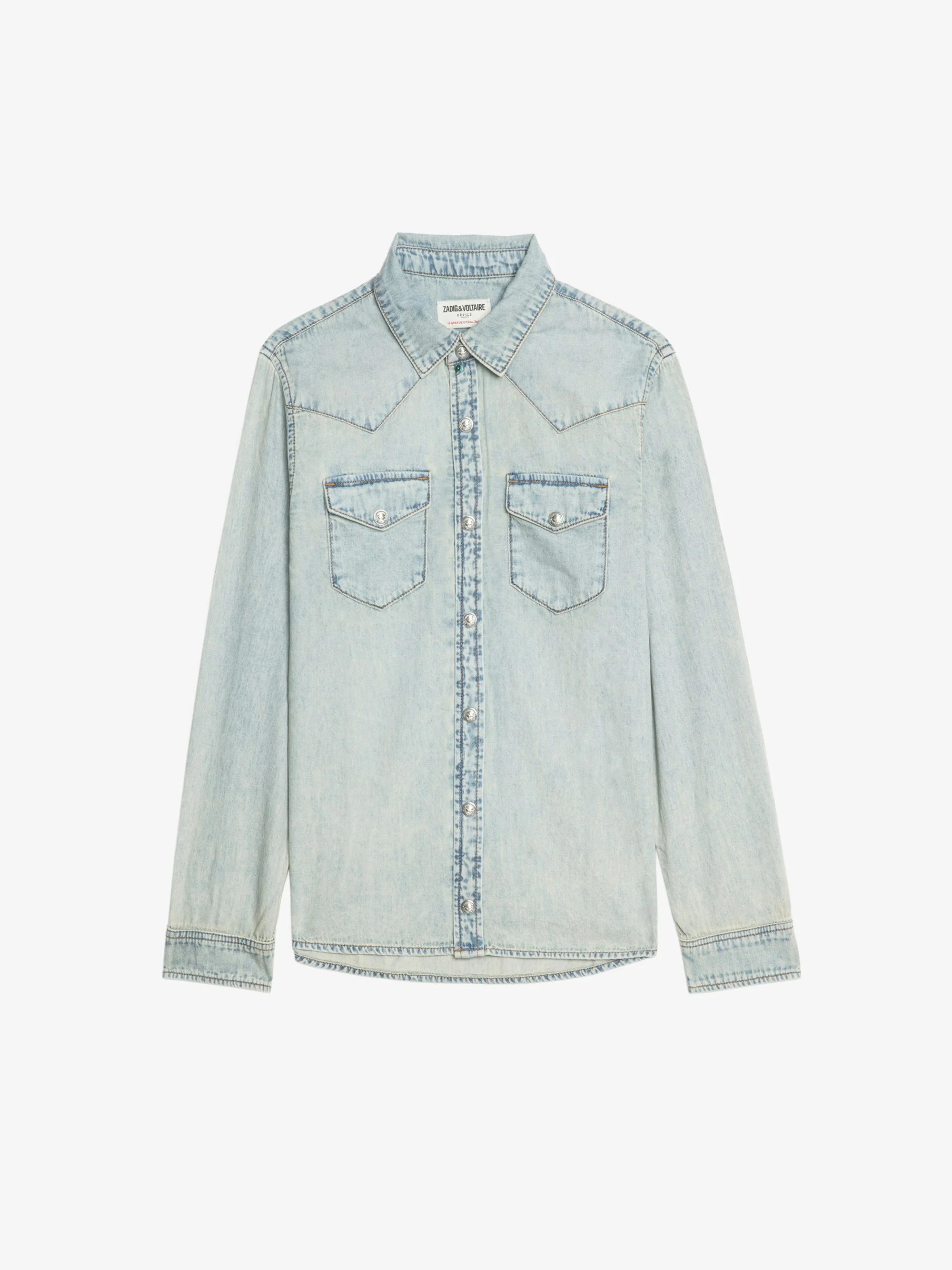 Denim shirt with embroidery and studs on the back. Description & details - Shirt in 100% cotton - Classic collar - Long sleeves - Button fastening - Flap pockets - Studs and embroidery on the back Model is 180 cm / 5' 10" and is wearing a size S This item fits true to size. Choose your usual size. Composition 100% Cotton* Care - Hand-wash or machine-wash inside out in a mesh laundry bag on a 20°C delicate cycle with a maximum spin speed of 400 rpm - Air dry flat - Iron inside out at a maximum of 110°C Product code: WWSH02275_LIGHT BLUE
