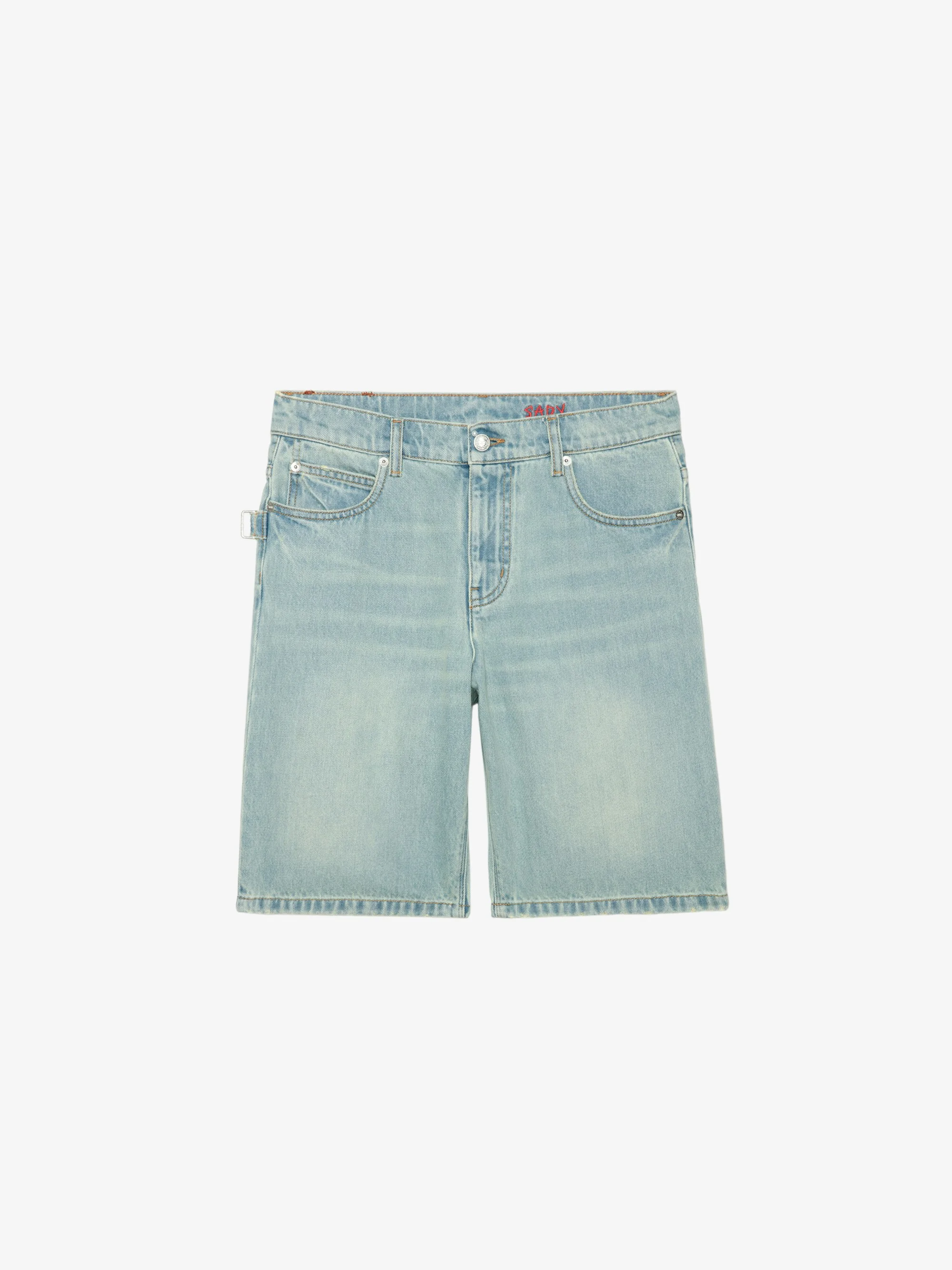 Multi-pocket denim bermuda shorts. Description & details - Denim bermuda shorts - Belt loops and leather jacron at the back - Patch pockets, jean pockets and ticket pocket - Mid-rise waist - Regular fit Model is 175 cm / 5' 8" and is wearing a size S This item fits true to size. Choose your usual size. Composition 100% Cotton* Care - Machine-wash inside out on a 30°C delicate cycle with similar colours - Air dry - Iron inside out at a maximum of 150°C, or in case of customised details, at a maximum of 110°C avoiding the customised details Product code: WWBS01161_LIGHT BLUE