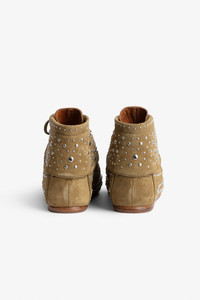 Women’s brown suede ankle boots with silver-tone studs and topstitching Description & details Folk and spectacular, the Santa boots in suede are among the collection’s must-haves. With their all-over studs, they add a boldly boho touch to the silhouette. - Women's Zadig&Voltaire Record brown suede ankle boots - Silver-tone round studs - Flap panels - Laces - Topstitching - Made in Spain Heel : 3 cm Composition 100% Cow leather Product code: SWCT00793_RECORD