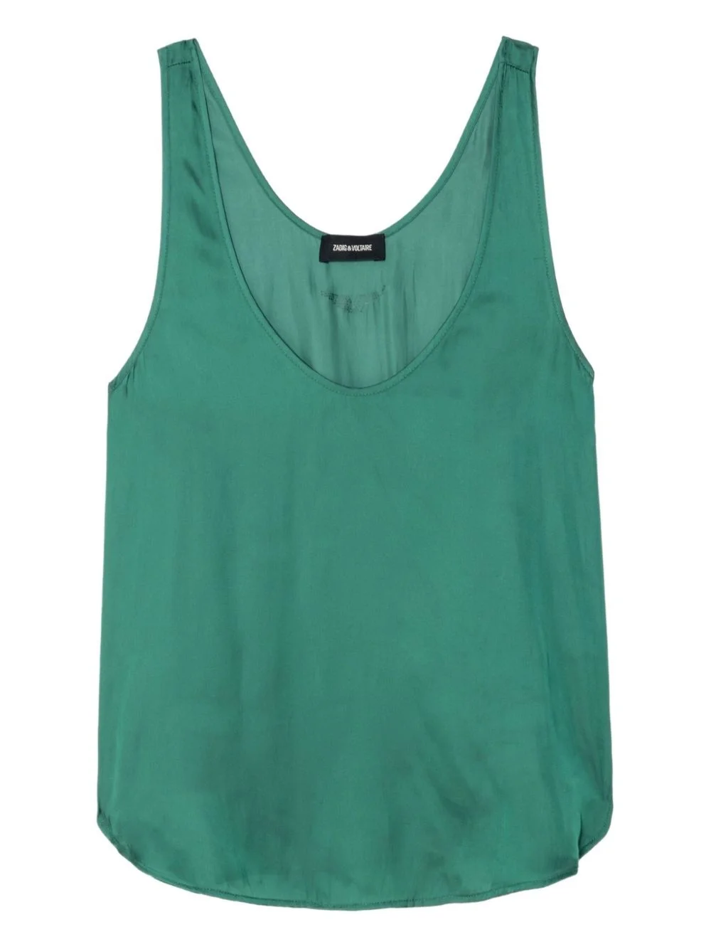 satin-effect sleeveless top Highlights - Emerald green - Deep v-neckline - Relaxed fit - Keyhole detail at back - Subtle sheen Imported Composition Recycled Polyester 57%, Polyester 43%