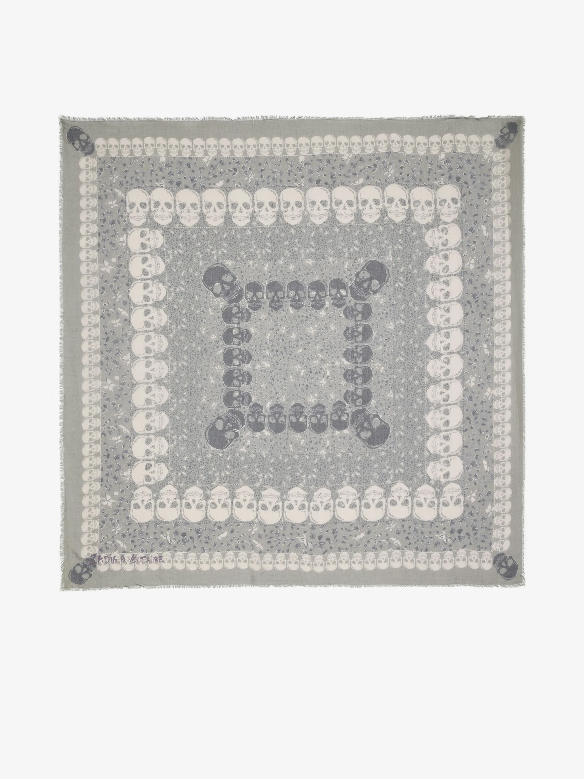 Scarf in modal with skull and flower print. Description & details - Modal scarf - Printed with skulls and flowers 135 x 135 cm Composition 100% Modal Care - Hand-wash or machine-wash inside out in a mesh laundry bag on a 20°C delicate cycle with a maximum spin speed of 400 rpm - Air dry flat - Iron inside out at a maximum of 110°C Product code: OWSC01519_RECORD