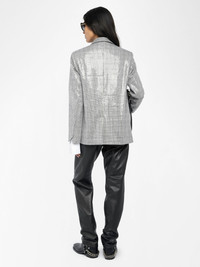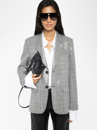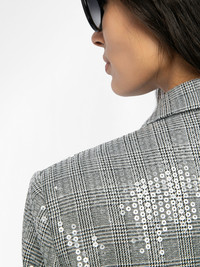 Regular fit blazer in sequined Prince of Wales check with button closure. Description & details - Straight tailored blazer - Prince of Wales pattern with sequins - Classic lapel - Button fastening - Piped pockets and flap pockets - Long sleeves with shoulder pads - Regular fit Model is 180 cm / 5' 10" and is wearing a size S This item fits true to size. Choose your usual size. Composition 63% Polyester** 33% Viscose 2% Elasthanne 2% Metallic fiber Care This garment should be dry-cleaned only. Product code: WWBL01941_BLACK