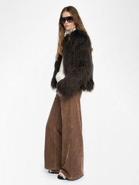Coat in curly faux fur with long sleeves. Description & details - Coat in curly faux fur - Round neck - Single-breasted - Long sleeves Model is 178 cm / 5' 10" and is wearing a size S This item fits true to size. Choose your usual size. Composition 77% Acrylic 23% Polyester** Care This garment should be dry-cleaned only. Product code: WWCO01243_DARK CHOCOLATE