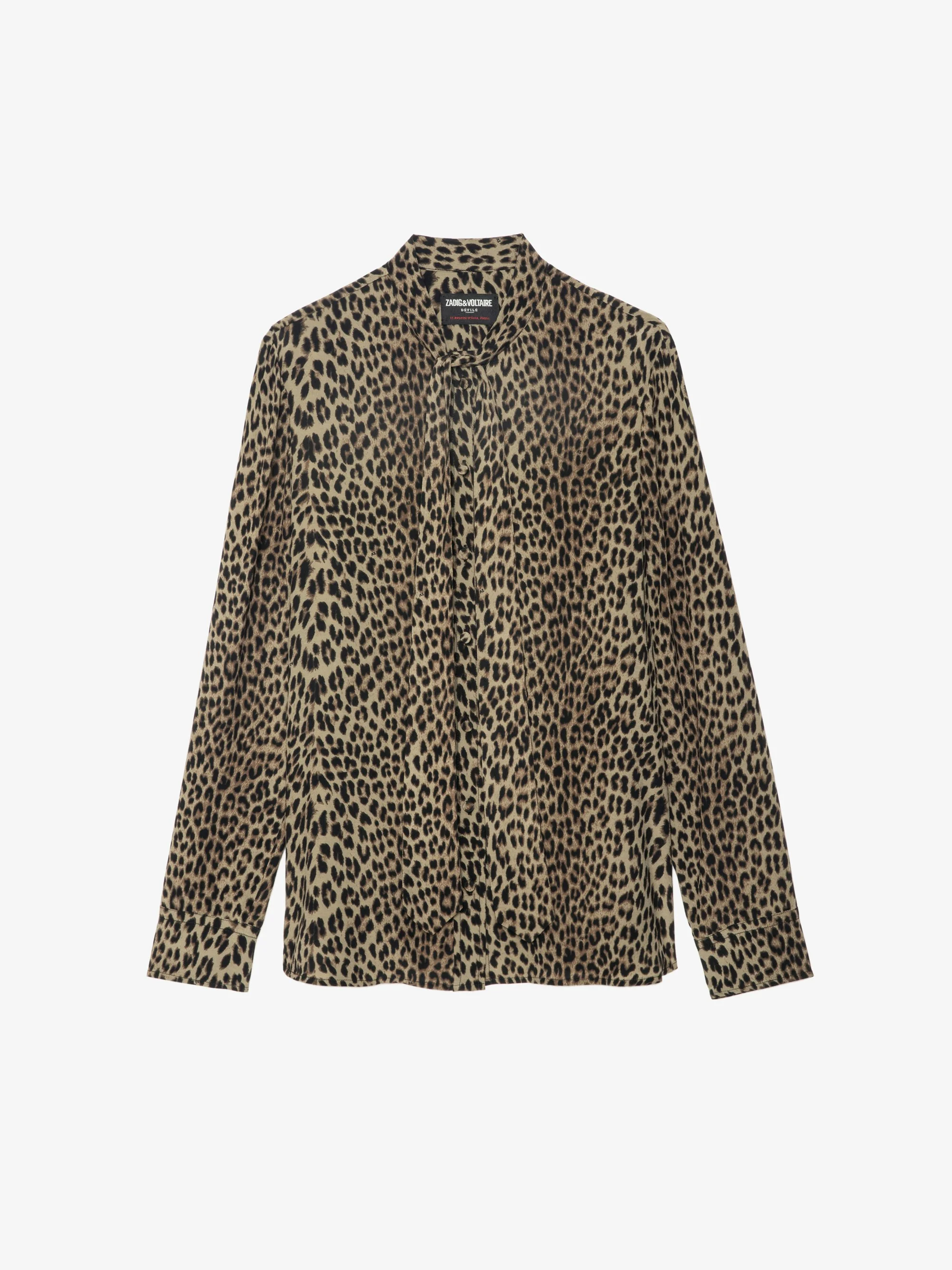 Satin shirt with pussy-bow collar, wing embroidery on back and button closure. Description & details - Flowy satin shirt - Leopard print - Pussy-bow collar - Button closure - Wing rhinestones on back - Long sleeves Model is 180 cm / 5' 10" and is wearing a size S This item has a fitted cut. If you are between sizes or prefer a looser fit, go for one size up. Composition 100% Viscose** Care - Hand-wash or machine-wash inside out in a mesh laundry bag on a 20°C delicate cycle with a maximum spin speed of 400 rpm - Air dry flat - Iron inside out at a maximum of 110°C Product code: WWSH02268_LEAVES