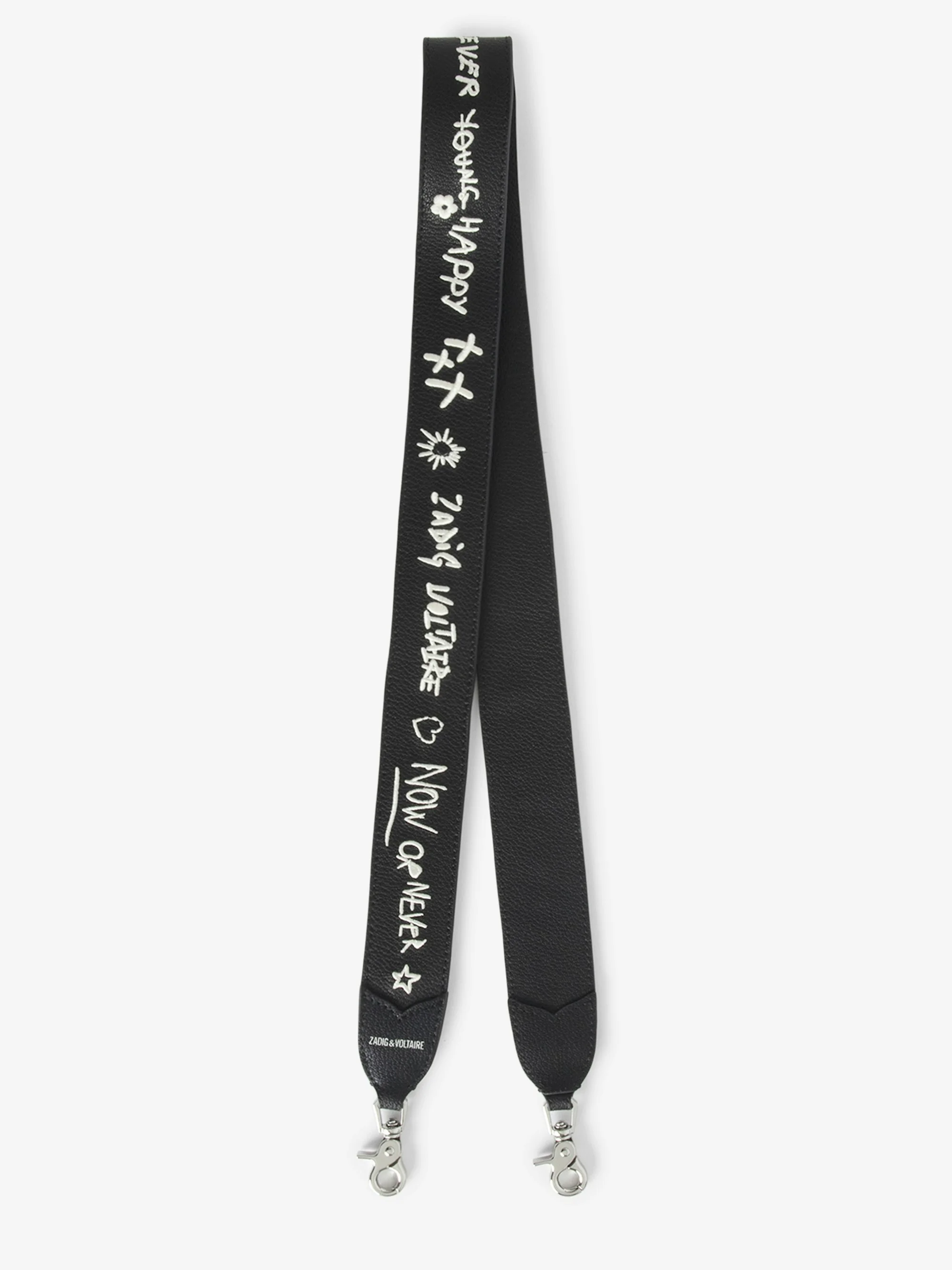 Adjustable shoulder strap in grained leather with wing signature tag. Description & details - Shoulder strap in black grained leather - Adjustable and removable - Snap hooks - Contrasting tag prints - Grained leather inserts with wing signature 100 x 100 x 4 cm Composition 100% Cow leather Care - Protect your leather item from humidity and any source of heat (radiator, sun) - Avoid your item coming into contact with water - Regularly care for your leather item using a colourless nourishing cream for leather, suitable for leather goods - Ensure you wear your item with similar colours - Avoid overfilling your bag to ensure its durability - In case of stains, contact a leather professional Product code: LWST01126_NOIR