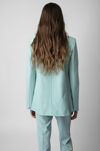Women's sky blue blazer Description & details Keep it elegant with the tailored Voyage blazer with its long sleeves, button closure and flap pockets. Pair it with the matching shorts for a chic, confident look. - Zadig&Voltaire women's blazer - Tailored collar - Epaulettes - Button closure - 2 flap pockets - Back slits - Long sleeves with mitred cuffs Model is 174 cm / 5' 8" and is wearing a size S This item is true to size. We recommend buying your usual size. Composition 75% Acetate 25% Polyester Care Follow the washing and care instructions on the composition label sewn onto the product. Product code: WWBL00005_CELADON
