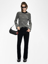 Striped sailor sweater with wing buttons. Description & details - Wool and cashmere sweater - Striped print - Round neck with 3 wing buttons Model is 180 cm / 5' 10" and is wearing a size S This item fits true to size. Choose your usual size. Composition 90% Wool* 10% Cashmere Care - Hand-wash or machine-wash on a 20°C wool cycle with a maximum spin speed of 400 rpm - Do not wring - Air dry flat - Iron inside out at a maximum of 110°C, avoiding any customised details Product code: KWSW02837_BLACK