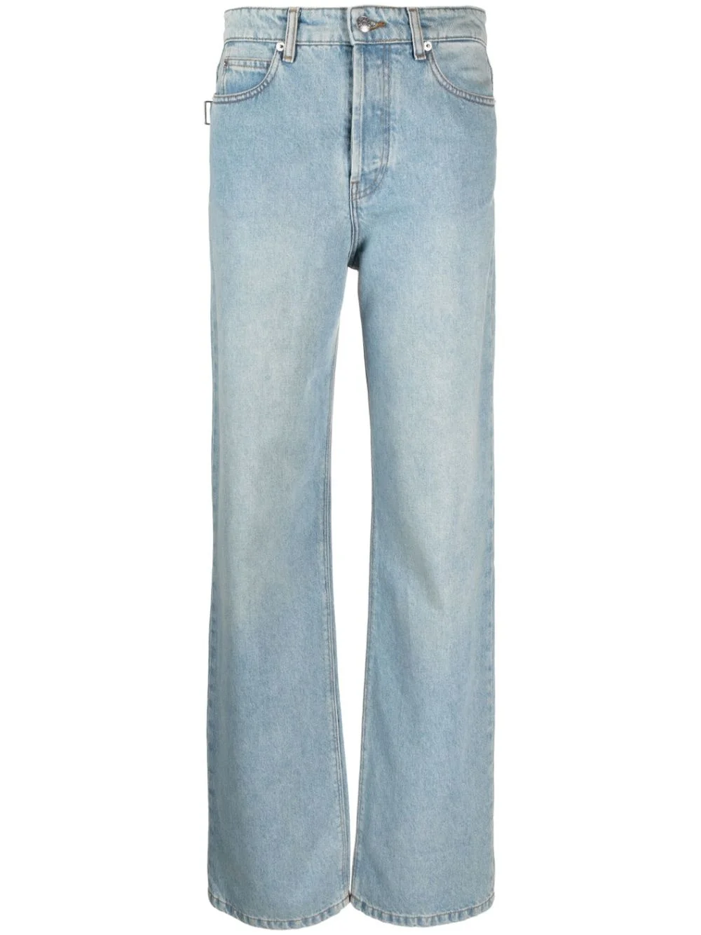 straight-leg jeans Highlights - Light blue - Cotton - Denim - Logo patch to the rear - Belt loops - Front button fastening - Mid-rise - Straight leg - Classic five pockets Imported Composition Cotton 100% SIZE & FIT Model measurements Height 5 ft 11 in(1.8 m) Bust/Chest 31.49 in(80 cm) Hips 36.41 in(92.5 cm) Waist 25.59 in(65 cm) FittingInformation Designed with a flared hem, these jeans allow for a close fit at the waist with a slim fit over the leg and widening towards the hem Sturdy and hard-wearing, this denim piece offers no stretch This piece fits true to size – take your usual size Washing instructions Machine Wash