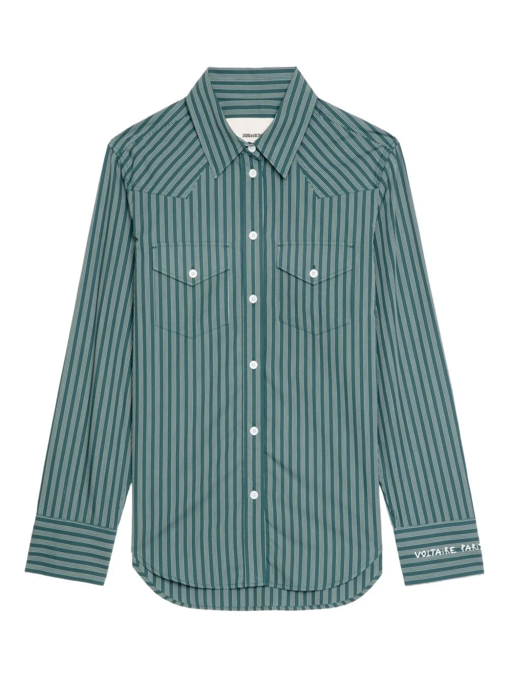 striped shirt Highlights - Emerald green - Vertical stripe pattern - Chest pockets - Long sleeves - Button fastening Imported Composition Cotton 100% Washing instructions Read Manufacturer Guidelines