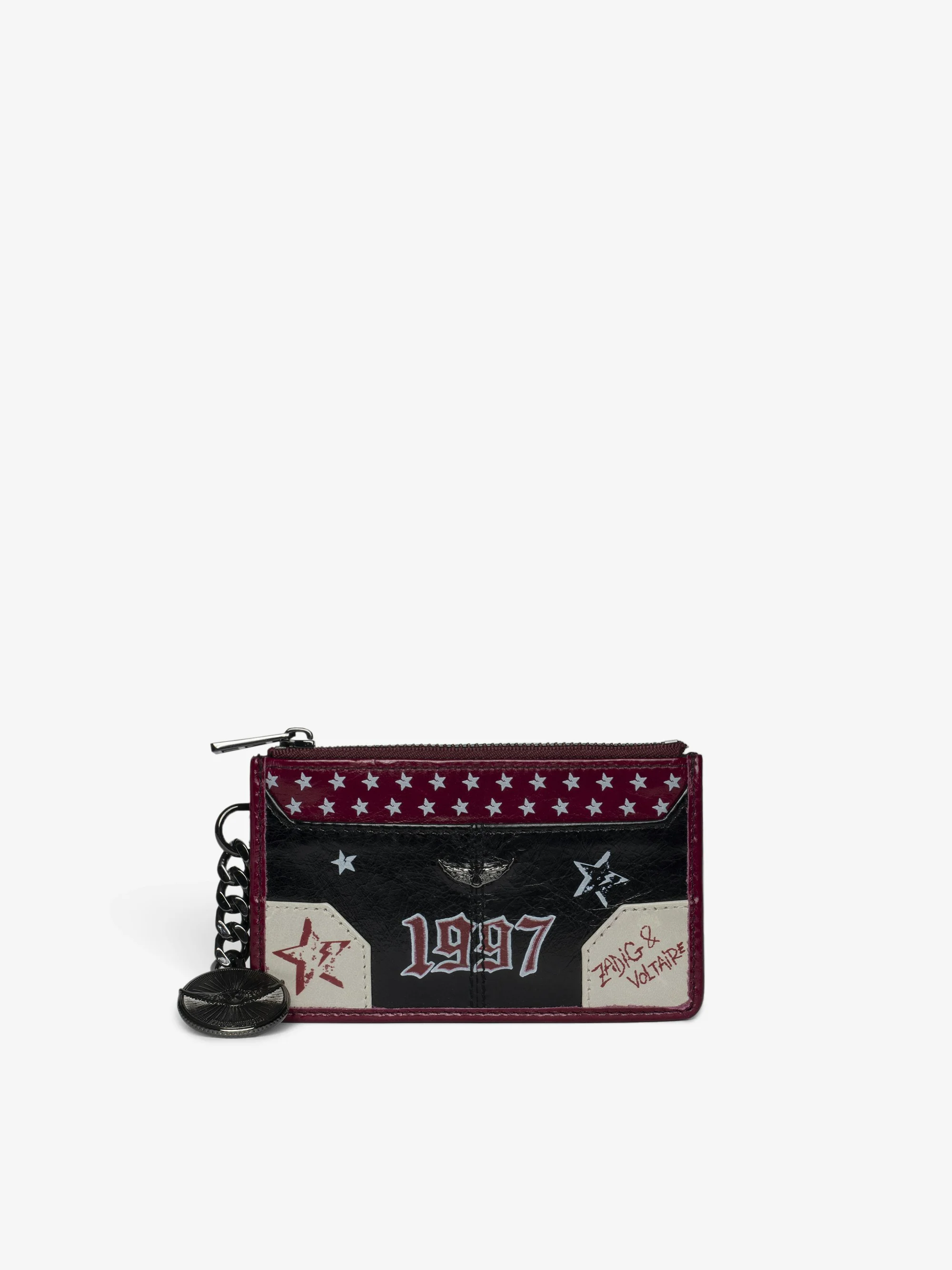 Patent leather card holder with vintage-inspired effect, medallion and wing signatures. Description & details - Card holder in vintage-effect patent leather - Punk animation - Interior zipped pocket - 6 card slots, including 1 at the front and 5 at the back - Medallion charm - Wing signature 13 x 7.5 cm Composition 100% Cow leather Care - Protect your leather item from humidity and any source of heat (radiator, sun) - Avoid your item coming into contact with water - Regularly care for your leather item using a colourless nourishing cream for leather, suitable for leather goods - Ensure you wear your item with similar colours - Avoid overfilling your bag to ensure its durability - In case of stains, contact a leather professional Product code: LWSG03676_BLACK
