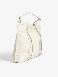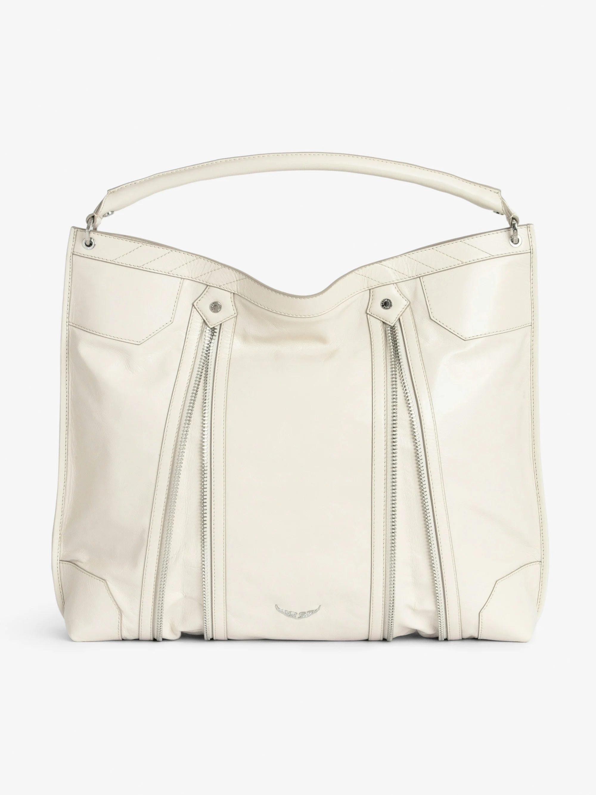 Vintage-effect patent leather hobo bag with handle and signature wings. Description & details - Women’s Sunny Hobo bag in white patent leather with vintage effect - Leather handle - Zip fastening - Zipped gusseted compartments to make the bag bigger - One inside zipped pocket - Metal wings - Can be carried in the hand or worn on the shoulder Composition 100% COW LEATHER Care - Protect your leather item from humidity and any source of heat (radiator, sun) - Avoid your item coming into contact with water - Regularly care for your leather item using a colourless nourishing cream for leather, suitable for leather goods - Ensure you wear your item with similar colours - Avoid overfilling your bag to ensure its durability - In case of stains, contact a leather professional Product code: LWBA02531_FLASH