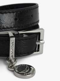 Double-wrap vintage-effect patent leather bracelet with a charm medallion. Description & details - Double-wrap bracelet in black vintage-effect patent leather for women - Holes, metal buckle and Zadig&Voltaire medallion charm 38.5 cm Composition 100% Cow leather Care - Clean you jewellery with a soft, dry cloth - Avoid contact with water and chemicals (fragrance, cosmetics, chlorine, hydroalcoholic gel) - Protect your jewellery from humidity and any source of heat - Avoid sleeping with your jewellery on - Store your jewellery in its protective pouch " Product code: OWJW01753_BLACK