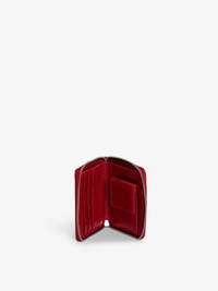 Vintage-effect patent leather purse with medallion and signature wings. Description & details - Women’s purse in Power red patent leather with vintage effect - Zip fastening with metal medallion pull tab - 3 card slots, one coin compartment with press studs, one double pocket - One flat pocket - Metal wings - Topstitching - Embossed with Zadig&Voltaire Width x height x depth: 10,5 x 9,5 x 2 cm Composition 100% COW LEATHER Care - Protect your leather item from humidity and any source of heat (radiator, sun) - Avoid your item coming into contact with water - Regularly care for your leather item using a colourless nourishing cream for leather, suitable for leather goods - In case of stains, contact a leather professional Product code: LWBA02518_POWER