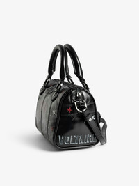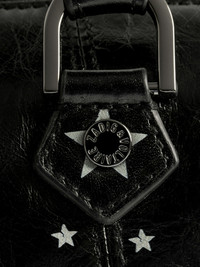 Mini bag in patent leather with vintage effect, punk tag, adjustable shoulder strap and wings signature. Description & details - Mini bag in patent leather - Punk tag animation - 2 handles and one adjustable and removable shoulder strap - Zip closure - Patch pocket and zipped interior pocket - Wings signature - Worn by hand, shoulder or cross-body 22.5 x 14.5 x 11.5 cm Composition 100% Cow leather Care - Protect your leather item from humidity and any source of heat (radiator, sun) - Avoid your item coming into contact with water - Regularly care for your leather item using a colourless nourishing cream for leather, suitable for leather goods - Ensure you wear your item with similar colours - Avoid overfilling your bag to ensure its durability - In case of stains, contact a leather professional Product code: LWBA04146_BLACK