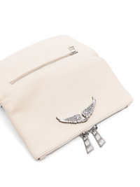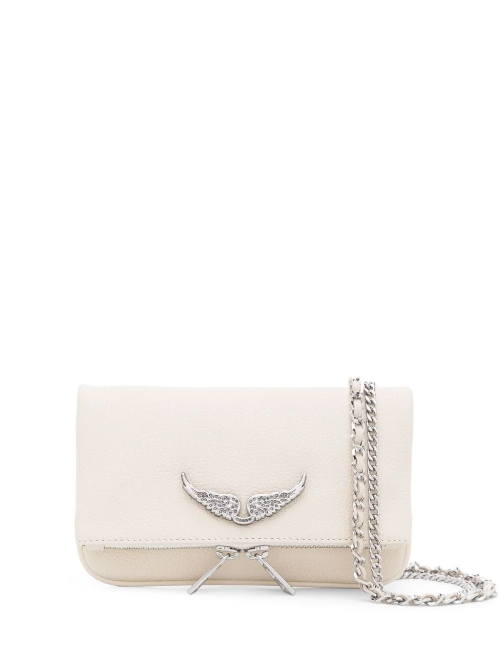 Swing Your Wings Rock Nano leather crossbody bag This white iteration of the Swing Your Wings Rock bag showcases Zadig & Voltaire's strong character. It’s crafted from cotton and decorated with the iconic wing-shaped plaque at the front. Highlights - Cream white - Calf leather - Grained texture - Silver-tone logo plaque - Crystal embellishment - Detachable chain-link top handle - Detachable leather and chain-link shoulder strap - Rear zip-fastening pocket - Zip pocket at the flap closure - Foldover top with magnetic fastening - Main compartment - Internal logo patch - Cotton lining - Silver-tone hardware - This piece comes complete with a protective dust bag. Imported Composition Lining: Cotton 100% Outer: Calf Leather 100% SIZE & FIT Model measurements Height 5 ft 10 in(1.78 m) Bust/Chest 31.49 in(80 cm) Hips 37 in(94 cm) Waist 23.62 in(60 cm) Measurement DEPTH 1.18 in(3 cm) HANDLE 9.05 in(23 cm) HEIGHT 3.93 in(10 cm) STRAP 50.39 in(128 cm) WIDTH 7.08 in(18 cm)