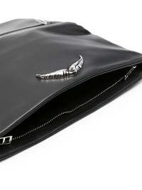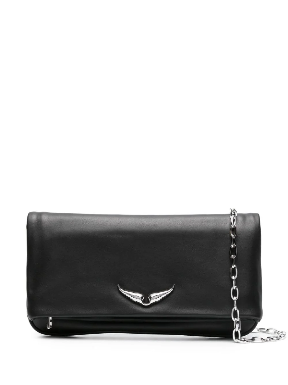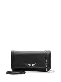 Swing Your Wings Rocky shoulder bag This black iteration of the Swing Your Wings Rocky bag showcases Zadig & Voltaire's strong character. It’s crafted from black leather and decorated with the iconic wing-shaped plaque at the front. Highlights - Black - Calf leather - Smooth grain - Silver-tone logo plaque - Foldover top with magnetic fastening - Detachable chain-link shoulder strap - Detachable shoulder strap - Main compartment - Zip-fastening compartment - Rear zip-fastening pocket - Internal logo patch - Full lining - Silver-tone hardware - This piece comes complete with a protective dust bag. Imported Composition Outer: Calf Leather 100% SIZE & FIT Model measurements Height 5 ft 11 in(1.8 m) Bust/Chest 32.67 in(83 cm) Hips 36.22 in(92 cm) Waist 24.4 in(62 cm) Measurement DEPTH 0.78 in(2 cm) HANDLE 12.99 in(33 cm) HEIGHT 5.11 in(13 cm) STRAP 22.44 in(57 cm) WIDTH 10.62 in(27 cm)