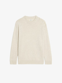 Oversized round neck sweater with jeweled buttons. Description & details - Sweater in wool and cashmere - Round neckline - Button fastening with jeweled buttons - Long sleeves - Oversized fit Model is 178 cm / 5' 10" and is wearing a size XXS-XS This item has a loose fit. For a more fitted look, choose one size down from your usual size. Composition 90% Merino wool* 10% Cashmere Care - Hand-wash or machine-wash on a 20°C wool cycle with a maximum spin speed of 400 rpm - Do not wring - Air dry flat - Iron inside out at a maximum of 110°C, avoiding any customised details Product code: KWSW02932_CREAM