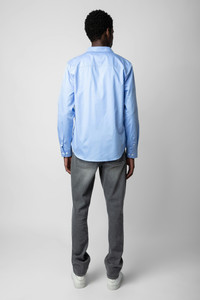 Unisex sky blue cotton shirt with “Art Is Truth” embroidery on the right cuff. Description & details - Unisex sky blue cotton shirt - “Art Is Truth” embroidery on right cuff - Shirt collar and button fastening - Long sleeves and button cuffs - Made in Portugal Model is 188 cm / 6' 2" and is wearing a size M This item is true to size. We recommend buying your usual size. Composition 100% COTTON* Care Hand-wash or machine-wash your garment at a maximum of 68°F, in a mesh laundry bag and inside out, with a gentle spin cycle. Air-dry. Iron your garment on a low heat setting or steam from a distance of 8", being particularly careful with customized details. Product code: WMSH00278_CIEL