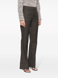 tailored flared wool trousers Highlights - Anthracite grey - Wool - Tailored cut - Mid-rise - Flared design - Belt loops - Concealed front fastening - Two diagonal pockets to the sides - Two rear patch pockets Imported Composition Lining: Acetate 50%, Viscose 50% Outer: Wool 100% SIZE & FIT Model measurements Height 5 ft 10 in(1.79 m) Bust/Chest 32.67 in(83 cm) Hips 34.25 in(87 cm) Waist 24.4 in(62 cm) FittingInformation Designed with a flared hem, these trousers allow for a close fit at the waist with a slim fit over the leg and widening towards the hem Made from a midweight non-stretch fabric, this piece offers minimal elasticity when worn This piece fits true to size – take your usual size Washing instructions Dry Clean Only