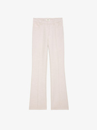 Sleek, sharp, and effortlessly cool. The Pistol trousers blend tailored precision with a relaxed fit, elevated by subtly shimmering thread for a hint of unexpected shine. Dress them up, dress them down—always with an edge. Description & details - Tailored pants in cotton with shimmer thread blend - Pleats along the length - Zip and hook fastening and belt loops - 2 side pockets and 2 welt pockets at the back - Flared hem Model is 171 cm / 5' 7" and is wearing a size 36 This item is true to size. We recommend buying your usual size. Composition 48% Cotton** 22% Viscose 20% Cotton 5% Polyester 5% Polyamide Care - This garment should be dry-cleaned only - Iron inside out at a maximum of 110°C, avoiding any customised details Product code: WWPA01854_LILAS