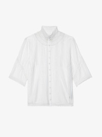 White short sleeved top with lace embroidery. Description & details - White lingerie style top - Inlaid lace throughout - Button closure down front - Short sleeves This item fits true to size. Choose your usual size. Composition 75% Cotton** 25% Viscose Product code: WWTO02001_JUDO