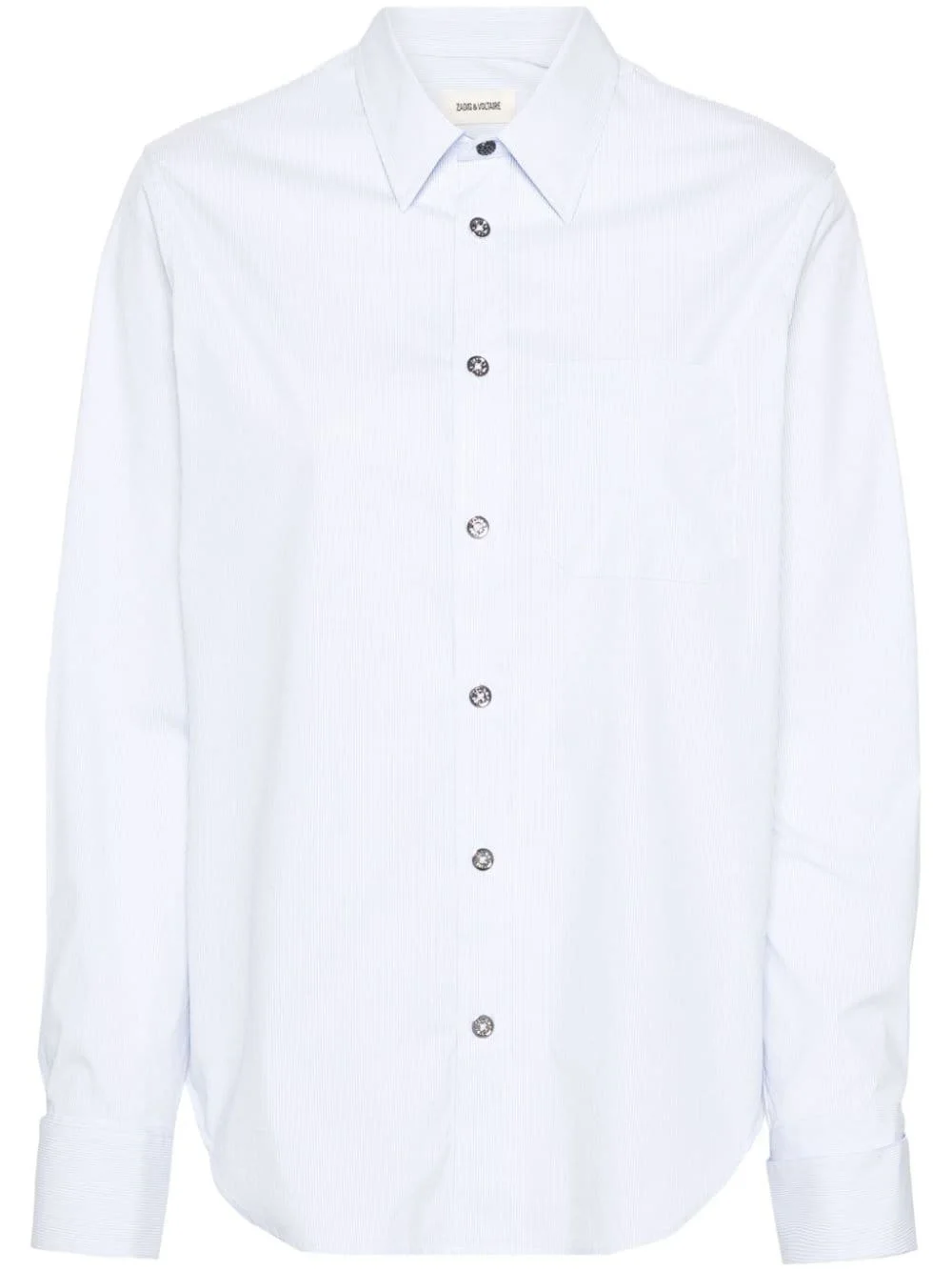 Taskiza striped shirt Highlights - Light blue/white - Organic cotton blend - Vertical stripe pattern - Classic collar - Long sleeves with french cuffs and cufflinks - Pleat detailing to the sleeve - Chest patch pocket - Curved hem - Logo-debossed buttons - Front button fastening Imported Composition Organic Cotton 65%, Polyamide 30%, Elastane 5% SIZE & FIT Model measurements Height 5 ft 9 in(1.75 m) Bust/Chest 34.64 in(88 cm) Hips 36.61 in(93 cm) Waist 26.37 in(67 cm) FittingInformation Designed for a relaxed fit, this piece allows for comfort and movement when worn Made from a lightweight non-stretch fabric This piece fits true to size – take your usual size