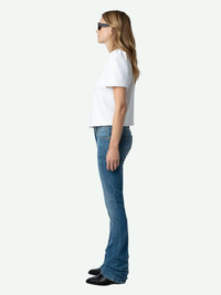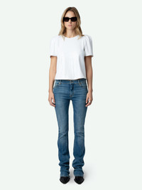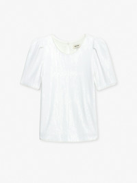 Striped white blouse with sequins and short balloon sleeves. Description & details - Women’s Judo white blouse - Stripes and sequins - Round neck - Buttoned opening at the back - Short balloon sleeves Model is 175 cm / 5' 8" and is wearing a size S This item is true to size. We recommend buying your usual size. Composition 96% COTTON** 4% ELASTANE Care - Hand-wash or machine-wash inside out in a mesh laundry bag on a 20°C delicate cycle with a maximum spin speed of 400 rpm - Air dry flat - Iron inside out at a maximum of 110°C Product code: WWTO00236_JUDO