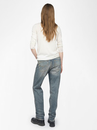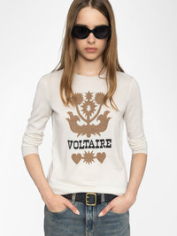 Sweater with round neck and intarsia on the front. Description & details - Sweater in 100% merino wool - Front intarsia with rhinestone details - Round neck - Long sleeves - ZV logo Model is 180 cm / 5' 10" and is wearing a size S This item fits true to size. Choose your usual size. Composition 100% Merino wool** Care - Hand-wash or machine-wash on a 20°C wool cycle with a maximum spin speed of 400 rpm - Do not wring - Air dry flat - Iron inside out at a maximum of 110°C, avoiding any customised details Product code: KWSW02802_ECRU