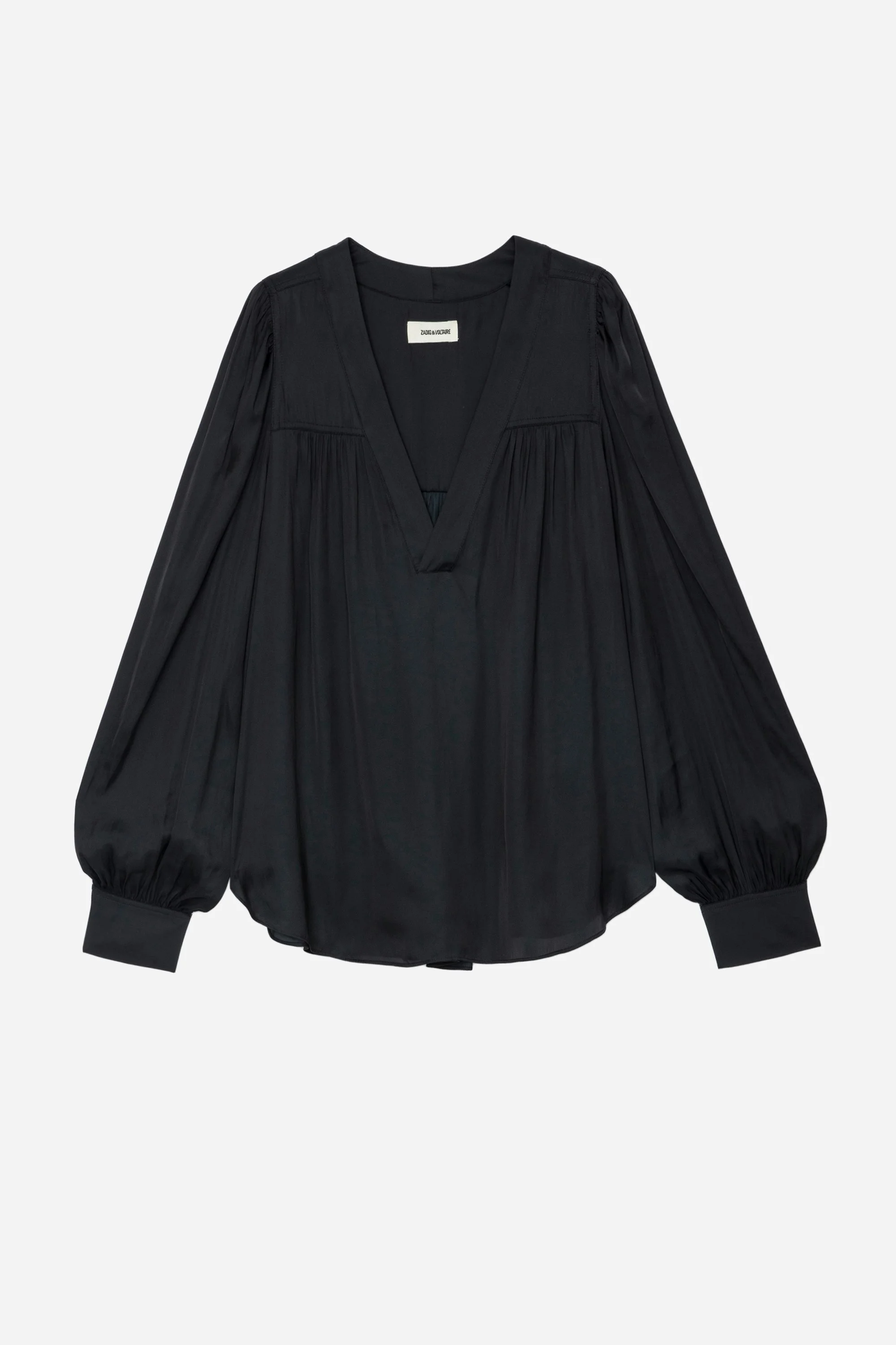 Women’s black satin long-sleeve blouse Description & details - Women’s satin blouse - Deep neckline - Long sleeves - Buttoned cuffs This item is true to size. We recommend buying your usual size. Composition 57% POLYESTER* 43% POLYESTER Care Hand-wash or machine-wash your garment at a maximum of 20 °C, in a mesh laundry bag and inside out, with a gentle spin cycle. Air-dry. Iron your garment on a low heat setting or steam from a distance of 20 cm, being particularly careful with customised details. Product code: WWSH00470_NOIR