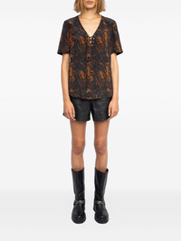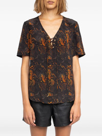 Terzo blouse Highlights - Black and multicolour - Python print - V-neck - Lace-up detail - Short sleeves Imported Composition Silk 100% Washing instructions Hand Wash