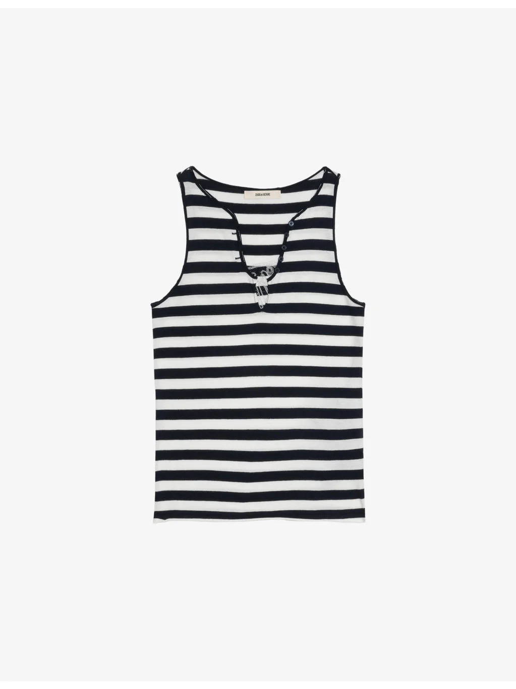 PRODUCT DETAILS - Zadig&Voltaire cotton tank - 100% cotton - Slim fit, hoody, Henley neck, rhinestone embellished slogan at the back, all-over stripes, ribbed - Machine wash at 30°C - True to size - Model is 5ft 10in/1.78m and wears a size small - Midweight, non-stretch Ref: R04611398