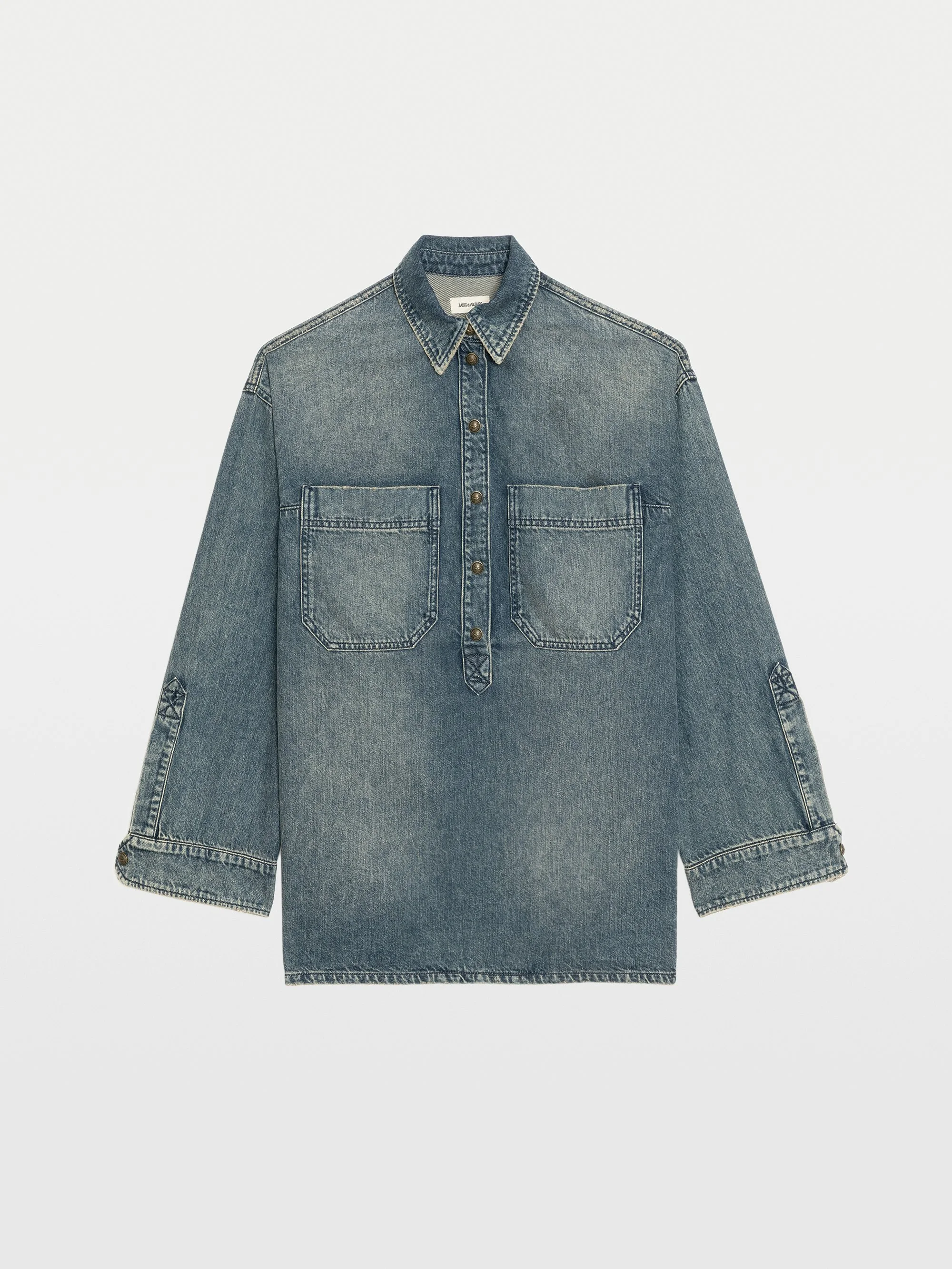 Oversized denim shirt with patch chest pockets. Description & details - 100% cotton denim shirt - Deep collar - Patch chest pockets - Long sleeves - Oversized fit Model is 176 cm / 5' 9" and is wearing a size S This item has a loose fit. For a more fitted look, choose one size down from your usual size. Composition 100% Cotton* Care - Machine-wash inside out on a 30°C delicate cycle with similar colours - Air dry - Iron inside out at a maximum of 150°C, or in case of customised details, at a maximum of 110°C avoiding the customised details Product code: WWSH02282_MEDIUM BLUE