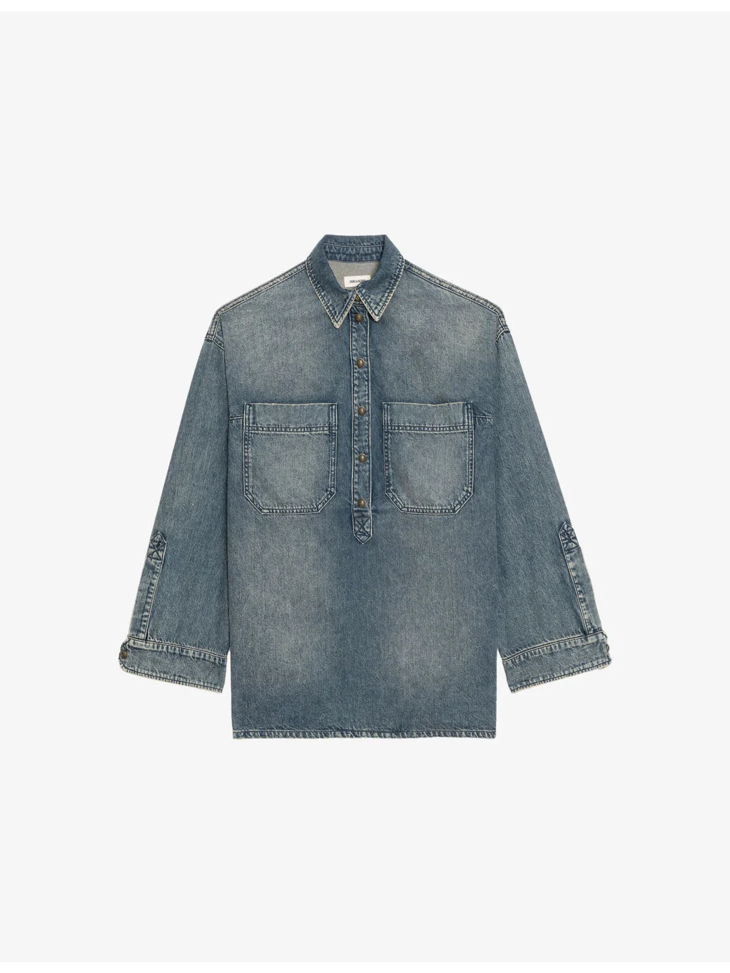 PRODUCT DETAILS - Zadig&Voltaire denim shirt - 100% cotton - Exposed button fastening - Relaxed fit, collared, two patch pockets at chest, long sleeves - Machine wash at 30°C - True to size - Model is 5ft 9in/1.75m and wears a size UK 8 - Lightweight, non-stretch Ref: R04614518