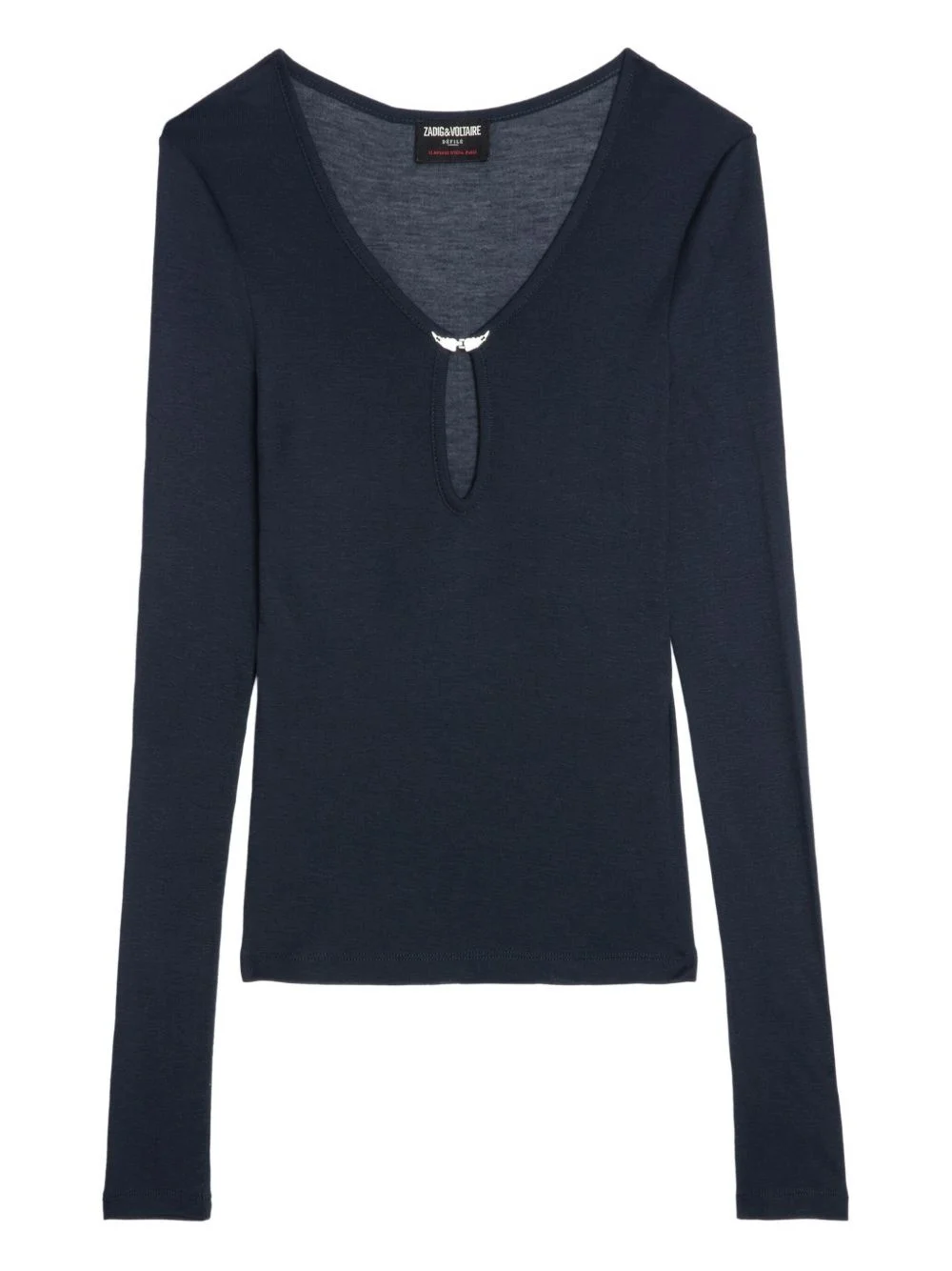 Tina T-shirt Highlights - Navy blue - Keyhole neck - Long sleeves - Logo plaque - Straight hem Imported Composition Modal 100%