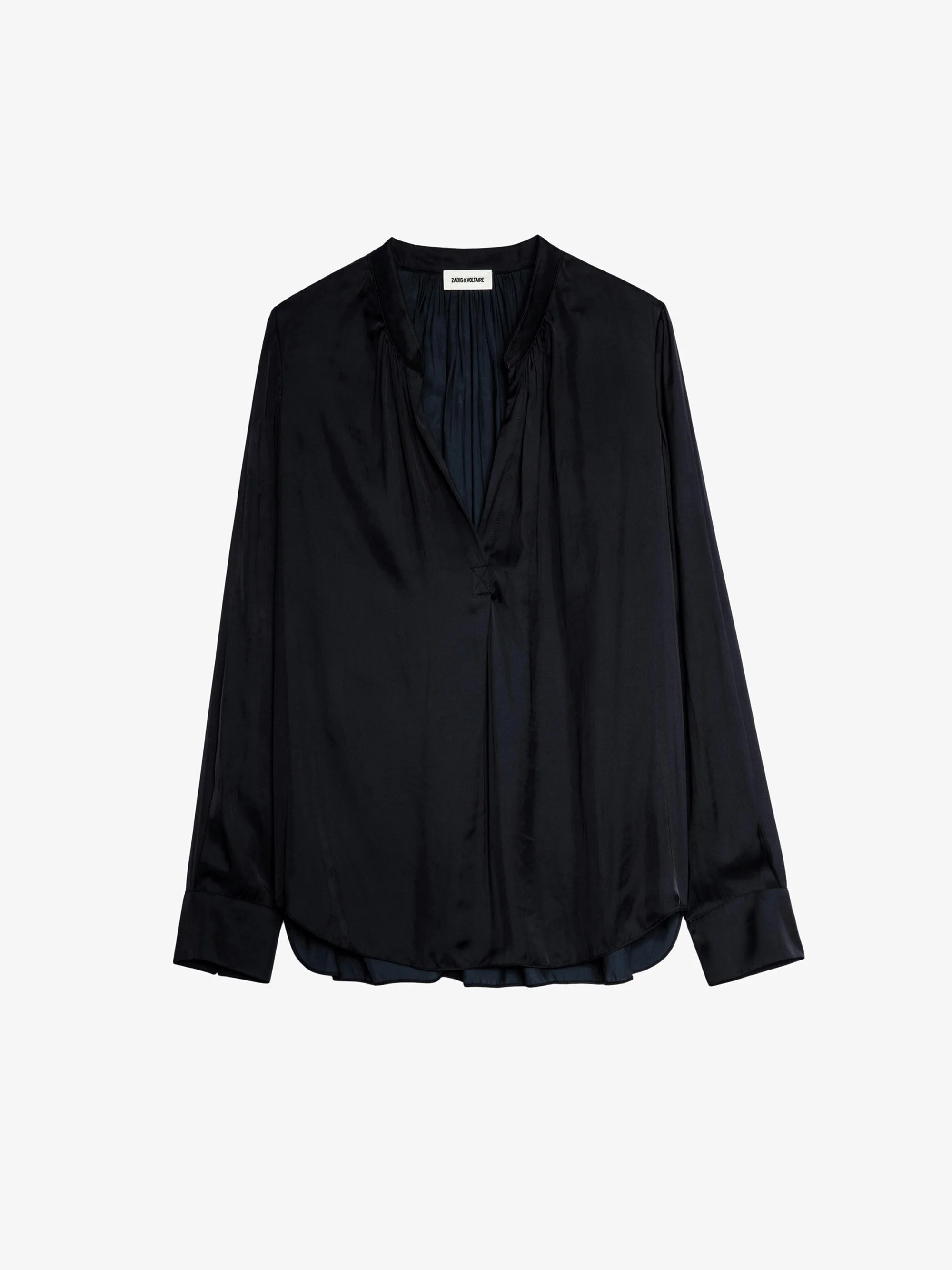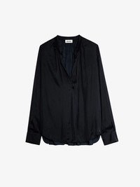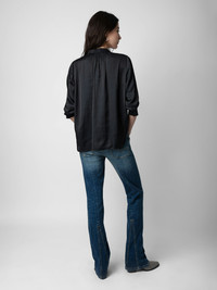 Zadig&Voltaire women's black top. Description & details Season after season, Zadig&Voltaire’s signature Tink tunic blouse proves to be a must-have for women’s wardrobes. With its light, satiny fabric, it is the perfect addition to a casual or chic look. - Zadig&Voltaire Women’s black flowing tunic blouse - Mao collar - Long sleeves - Buttoned cuffs - Gathering details Model is 180 cm/5'11" and is wearing a size S Model is 180 cm / 5' 10" and is wearing a size S This item is true to size. We recommend buying your usual size. Composition 57% POLYESTER** 43% POLYESTER Care - Hand-wash or machine-wash inside out in a mesh laundry bag on a 68°F delicate cycle with a maximum spin speed of 400 rpm - Air dry flat - Iron inside out at a maximum of 230°F Product code: PWGCP3201F_NOIR